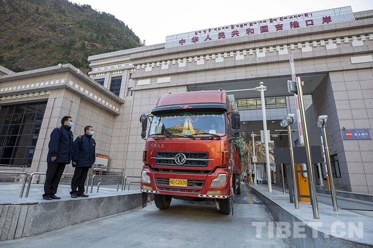 En photo : les douaniers travaillant au port terrestre de Gyirong.