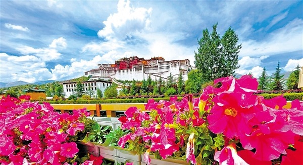 Le ciel est haut, les nuages sont légers et les fleurs s'épanouissent. Célébrant le 70e anniversaire de la libération pacifique du Tibet, toutes les régions du Tibet sont décorées de lanternes et de festons, afin de célébrer cette grande fête.