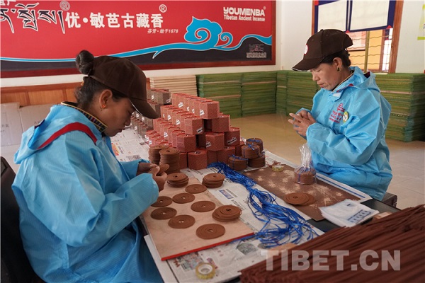 Des ouvriers du Parc industriel de Dagzê fabriquant de l'encens tibétain ancien.