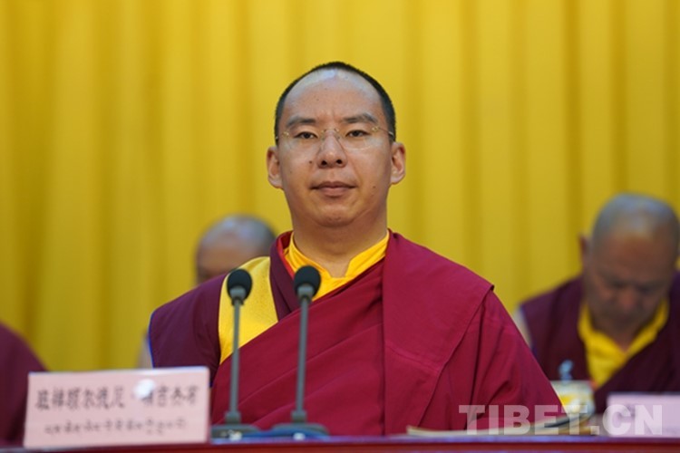 Le panchen Erdeni Chos-kyi rGyal-po, membre du Comité permanent du Comité national de la Conférence consultative politique du peuple chinois, vice-président de l'Association bouddhiste de Chine et président de la branche au Tibet de l'Association bouddhiste de Chine.