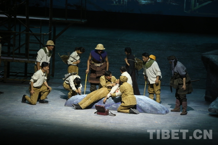 En photo : une scène de la pièce de théatre ? Anciens travailleurs d'aide au Xizang ?.