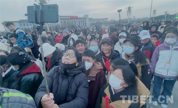 Le 23 février, alors qu'il faisait encore nuit, 22 étudiants de districts frontaliers de la ville de Shigatsé, dans la région autonome du Xizang, qui étaient en visite à Beijing dans le cadre d'un voyage d'études, attendaient sur la place pour assister à la cérémonie de lever du drapeau.