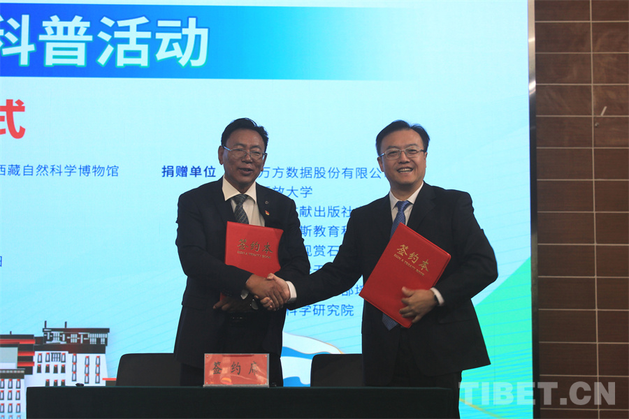 Après la cérémonie de lancement, huit entreprises et institutions venant de Beijing, du Jiangsu, de Shanghai et du Xizang ont fait des dons de ressources scientifiques pour soutenir le programme. Les représentants des huit donateurs ont signé des accords de don avec le Musée des sciences naturelles du Xizang.
