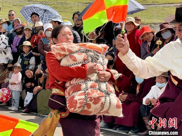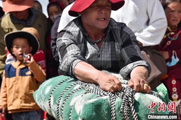 Récemment, lors du ? Festival des récoltes des agriculteurs et des bergers ? 2024 dans le district de Gande, préfecture autonome tibétaine de Golok, dans la province du Qinghai, un événement sportif ethnique traditionnel - une compétition de lever de sacs de sable - a eu lieu localement, et les gens y ont participé avec enthousiasme pour célébrer la récolte. Pendant la compétition, les joueurs doivent lever un sac de sable cubique (hommes : 140 kg ; femmes : 75 kg) et l’amener en marchant du point de départ au point final à 50 mètres de distance. S'ils parviennent à revenir en arrière depuis la ligne d'arrivée, les résultats seront encore meilleurs. En fin de compte, la personne qui a parcouru la plus longue distance gagne.