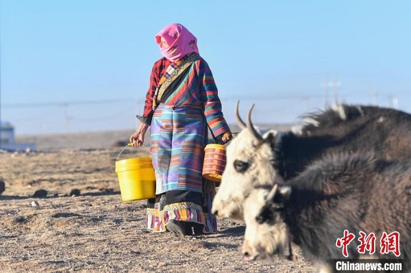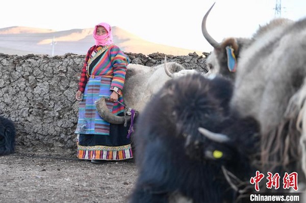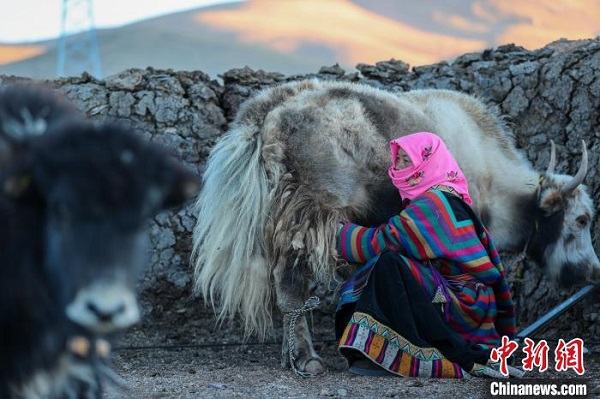 Un jour de décembre, Tuba Drolma, une éleveuse du bourg de Pana, dans le comté d'Amdo de la ville de Nagqu, se prépare à traire des yaks. Le bourg de Pana, situé au centre du comté d'Amdo, est traversé par le chemin de fer Qinghai-Xizang et la route Qinghai-Xizang, ce qui lui confère un accès facile. Les vaches et les moutons y abondent, et le paysage y est agréable.