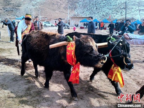 Le 18 mars, le village de Tajia, surnommé le ? village tibétain centenaire ?, situé dans le canton tibétain de Tajia, du comté autonome hui de Hualong, dans la ville de Haidong, de la province du Qinghai, a célébré la fête du labour. Les habitants tibétains, vêtus de leurs habits festifs et sous le regard des invités, ont guidé leurs b?ufs de labour et commencé une cérémonie agricole millénaire pour exprimer leur v?ux de conditions météorologiques favorables et de récolte abondante.