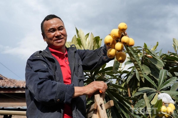 Bien que Garao Dorje n'en soit qu'au début de son apprentissage, il réussit déjà à produire de savoureuses nèfles. En regardant les néfliers à flanc de colline qu'il entretient avec soin chez lui, il sourit : ? Le néflier est rentable. J'ai encore 0,2 hectare de terrain disponible à la maison, je veux tout consacrer au néflier. ?