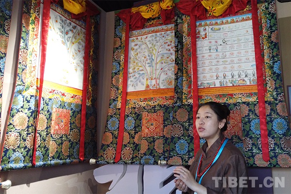 Au stand de calligraphie de Sichub Phuntsok, membre de l'Association des calligraphes de Nagqu, les ?uvres utilisant l'écriture tibétaine, aux lignes fluides et aux traits élégants, attiraient les curieux, nombreux étaient ceux qui demandaient la signification des textes, s'ils pouvaient les emporter ou les acheter. Sichub Phuntsok a patiemment répondu à toutes les questions, invitant chaleureusement chacun à venir visiter Nagqu.