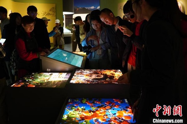 Des visiteurs admirent des photos de la faune et de la flore de la préfecture de Garzê exposées.