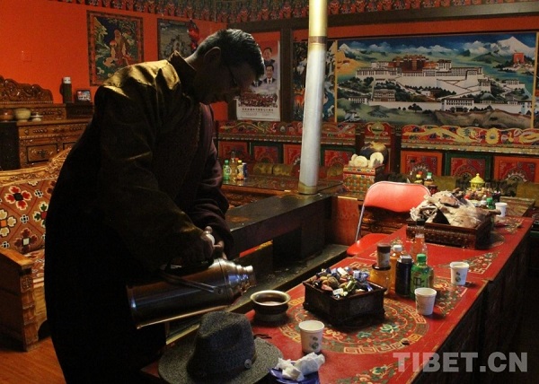 C'est une famille typique des régions pastorales du Xizang. Cette année, seuls Nyima, agé de 43 ans, et son fils Karma Ngodrup sont restés à la maison, son épouse Soma est partie dans les paturages pour s'occuper du troupeau, et sa fille, Chosang Drolma, étudie actuellement à Lhassa.