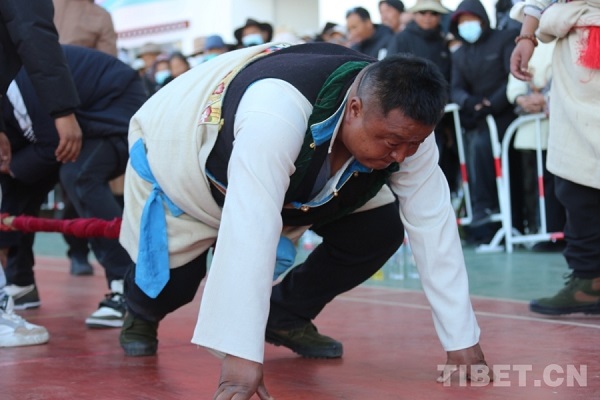 Le 21 novembre après-midi, la première Fête sportive des agriculteurs et éleveurs de Shannan a offert un affrontement saisissant alliant force et tradition : la finale de l'yajia. Au centre du terrain, les deux athlètes, tels deux éléphants en lutte, se penchaient, plantaient leurs appuis et tiraient de toutes leurs forces pour ramener vers eux le point central du ruban rouge symbolisant la victoire. En cet instant, la tension des muscles et l'intensité du regard révélaient toute la puissance esthétique du sport traditionnel tibétain, embrasant l'enthousiasme du public.
