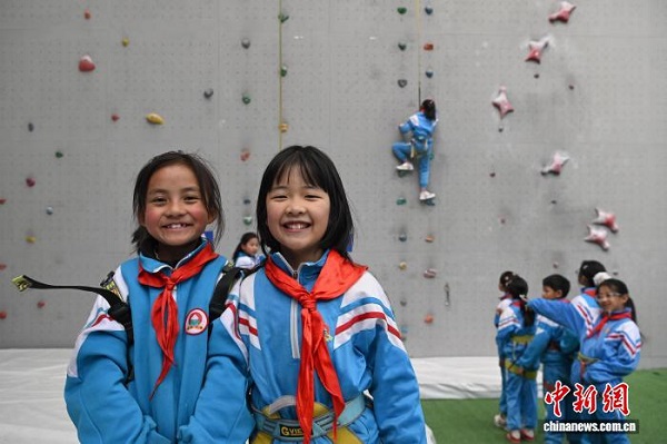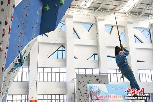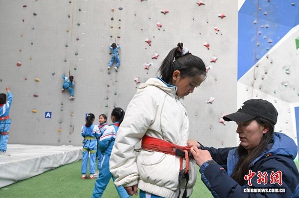 Ces derniers temps, l'équipe d'alpinisme du Xizang poursuit activement la mise en ?uvre du programme de club d'intérêt ? L'escalade entre à l'école ? à l'école primaire expérimentale de Lhassa. Selon les informations disponibles, ce club, ouvert en mai 2025, est destiné aux élèves de troisième et de quatrième années. Chaque vendredi après-midi, plus de 40 élèves sont organisés pour se rendre au gymnase d'escalade du Centre de gestion des sports de compétition de la Région autonome du Xizang, afin d'y suivre une formation technique en escalade et de développer leur intérêt pour ce sport.