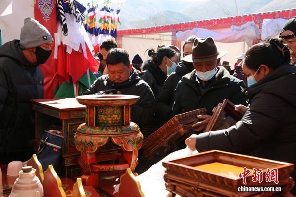 Des particuliers choisissant des meubles tibétains.