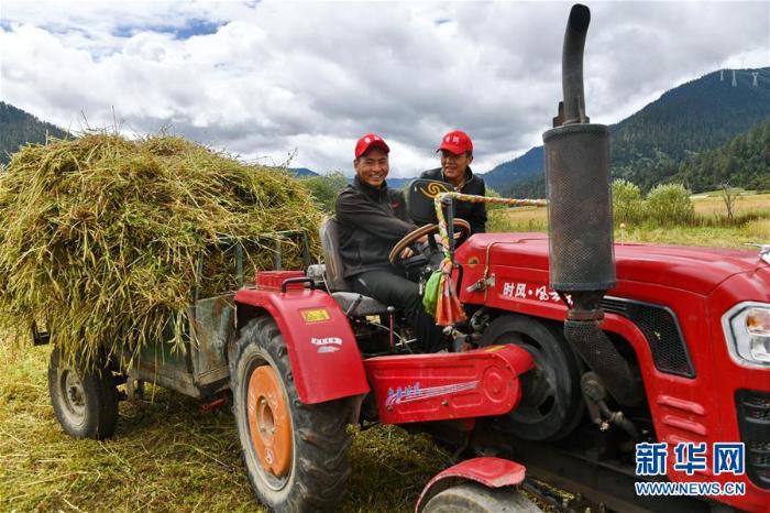 Ces derniers jours, à Bayi, village de la ville-préfecture de Nyingchi au Tibet, des bergers profitent de la météo pour stocker des herbes fourragères qui serviront de ration pour le bétail pendant l'hiver.
