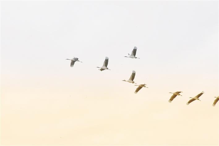 Chaque année, à la mi-novembre, les grues à cou noir commencent à migrer du nord du Tibet vers le sud afin d'y passer l'hiver. à la mi-mars de l'année suivante, elles retournent dans le nord par le même chemin afin d'élever la prochaine génération de grues. Le groupe commence à se diviser et à former de petits groupes fin mars et début avril, établissant progressivement leurs domaines respectifs alors qu'elles entrent dans la période d'accouplement. Présentement, il est temps pour elles de partir vers le nord.