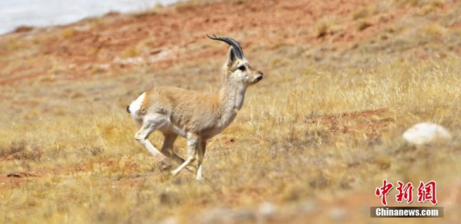 Mi-avril, des anes et des antilopes sauvages tibétains, espèces du premier et deuxième niveau national de protection, errent à nouveau sur les prairies des Monts Qilian dans le comté autonome Yugu de Sunan, province de Gansu.