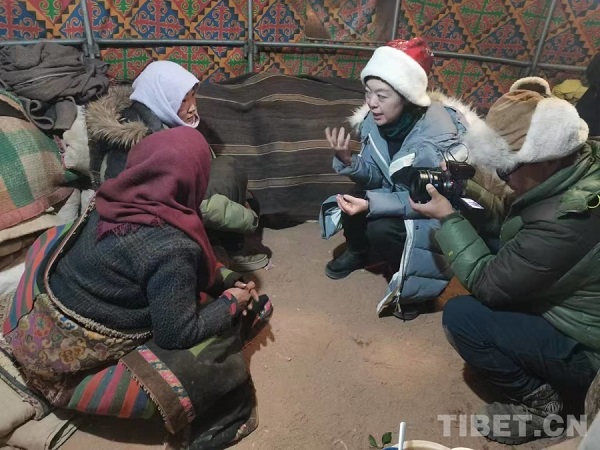En photo : l'équipe d'images naturelles des Amis des Vies de l'Himalaya enregistrant des récits oraux dans des zones extrêmement froid, à plus de 4500 mètres d'altitude.