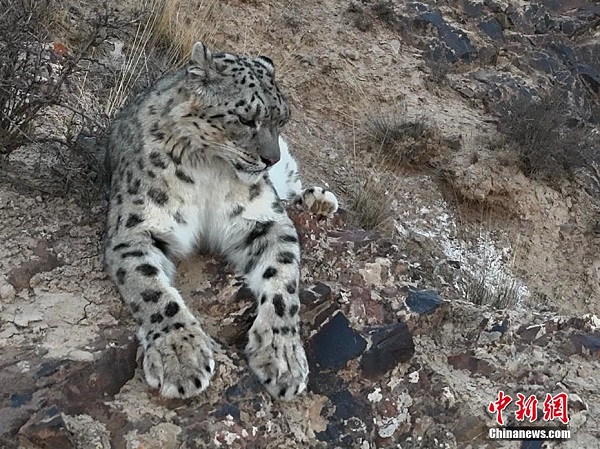 Ces derniers jours, alors qu'il faisait pa?tre ses troupeaux, Danzhi Gyatso, un éleveur de la préfecture autonome mongole et tibétaine de Haixi, dans la province du Qinghai, a capturé de précieuses images d'une panthère des neiges – espèce protégée de première classe en Chine – se reposant, en utilisant un drone sur une courte distance.