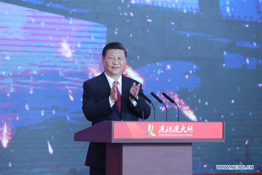 ZHUHAI, 23 octobre (Xinhua) -- Le président chinois Xi Jinping a annoncé mardi matin l'ouverture du pont Hong Kong-Zhuhai-Macao lors d'une cérémonie d'ouverture organisée à Zhuhai, ville c?tière de la province du Guangdong, dans le sud de la Chine.