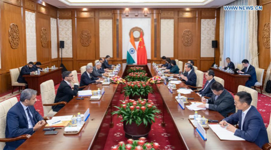 Le conseiller d'Etat chinois et ministre des Affaires étrangères, Wang Yi, s'est entretenu lundi avec le ministre indien des Affaires extérieures Subrahmanyam Jaishankar, en visite à Beijing.