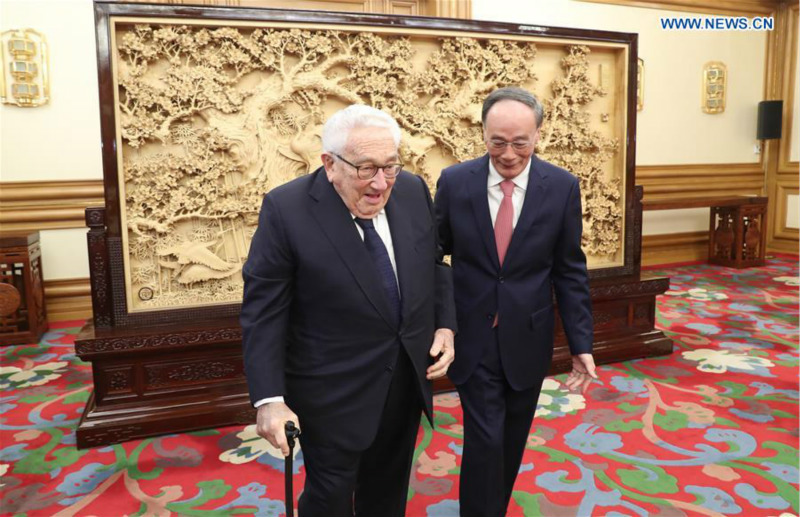 Le vice-président chinois, Wang Qishan, a rencontré samedi l'ancien secrétaire d'Etat américain Henry Kissinger, appelant les deux pays à traiter les questions stratégiques dans les relations bilatérales avec une vision plus large et une perspective à plus long terme.