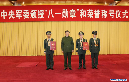 Le président chinois, Xi Jinping, a décerné mercredi la Médaille du 1er ao?t à trois militaires et conféré un drapeau d'honneur à un bataillon militaire pour leurs services exceptionnels, à l'approche du 95e anniversaire de la fondation de l'Armée populaire de Libération (APL) de Chine.