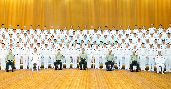 Au siège de la marine du commandement du Théatre d'opérations du sud, M. Xi a rencontré des représentants des officiers et des soldats, et a posé pour des photos de groupe avec eux. Il a salué les réalisations de la marine du commandement en matière d'auto-amélioration et d'exercice de ses fonctions depuis le 18e Congrès national du PCC en 2012.