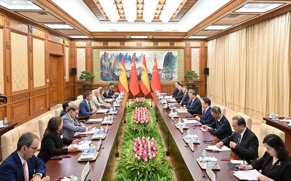 M. Xi a demandé à M. Sanchez de transmettre ses salutations au roi Felipe VI. Il a souligné que la Chine et l'Espagne avaient célébré l'année dernière le 50e anniversaire de l'établissement de leurs relations diplomatiques, et que les deux parties avaient depuis maintenu des échanges et des interactions étroits à tous les niveaux, et promu une coopération de haute qualité dans de nouveaux domaines.
