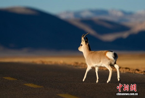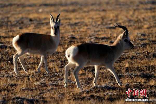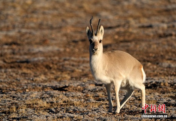 La gazelle tibétaine est un animal placé sous protection nationale de deuxième catégorie en Chine, en raison de la grande tache blanche en forme de c?ur située sur sa croupe, elle est aussi surnommée ? l'adorable créature au c?ur tendre ?.