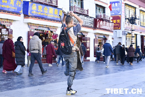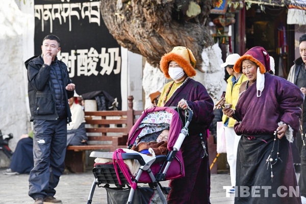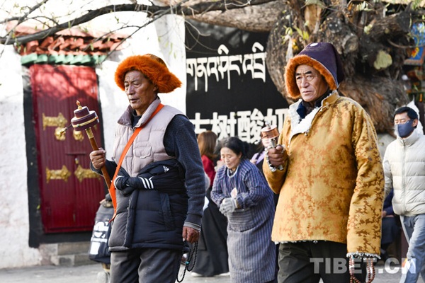 à l'approche du Nouvel An tibétain, la rue Barkor à Lhassa conna?t une forte affluence de fidèles venus prier et effectuer des pèlerinages. Chaque année, dès la fin octobre, pendant la période creuse des travaux agricoles, des fidèles venus de Chamdo, Nagqu, Ngari ainsi que des provinces du Sichuan, du Qinghai, du Gansu et du Yunnan entreprennent de longs voyages pour venir en pèlerinage. Outre le temple du Jokhang à Lhassa, le palais du Potala, le monastère de Drepung et le monastère de Sera, hauts lieux du bouddhisme tibétain, accueillent également un grand nombre de pèlerins.