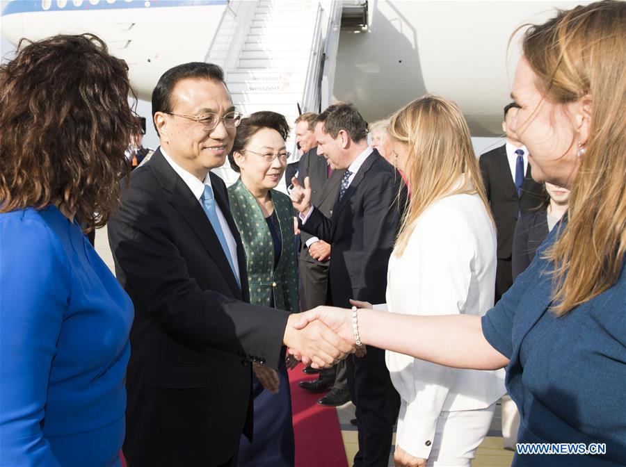 AMSTERDAM (Pays-Bas), 14 octobre (Xinhua) -- Le Premier ministre chinois Li Keqiang est arrivé dimanche à Amsterdam pour une visite officielle aux Pays-Bas, la première d'un Premier ministre chinois depuis 14 ans.