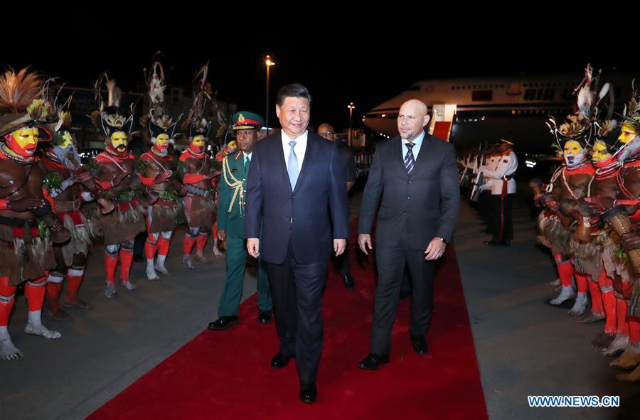 PORT MORESBY, 15 novembre (Xinhua) -- Le président chinois Xi Jinping est arrivé jeudi à Port Moresby pour une visite d'Etat en Papouasie-Nouvelle-Guinée (PNG) et la Réunion des leaders économiques de la Coopération économique Asie-Pacifique (APEC).