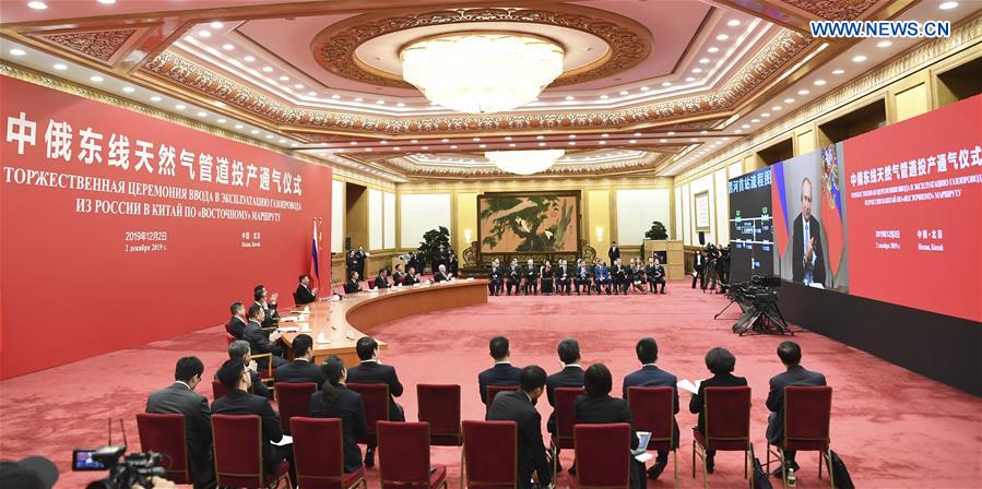 Le président chinois Xi Jinping et son homologue russe Vladimir Poutine ont assisté conjointement lundi après-midi, par vidéo-conférence, à la cérémonie de lancement de l'itinéraire oriental du gazoduc Chine-Russie.