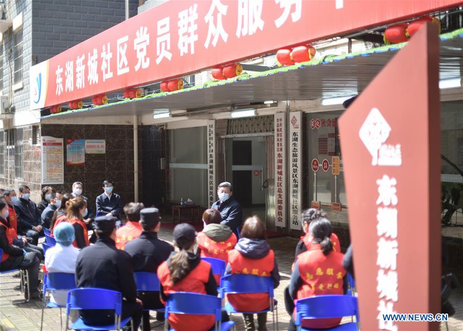 Le président chinois, Xi Jinping, a rendu visite mardi aux habitants qui sont mis en quarantaine chez eux dans un quartier de Wuhan, épicentre de l'épidémie de COVID-19, après sa visite à l'h?pital Huoshenshan pour une inspection de prévention et de contr?le de l'épidémie.