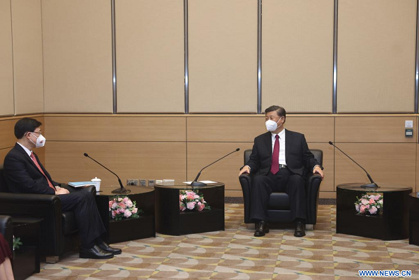 Accompagné de M. Lee, M. Xi a également rencontré de hauts responsables de l'exécutif, des organes législatif et judiciaire de la RAS de Hong Kong.