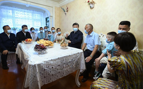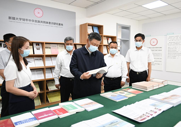 M. Xi a visité l'Université du Xinjiang, la Zone portuaire terrestre internationale d'Urumqi, la communauté de Guyuanxiang dans l'arrondissement de Tianshan et le Musée de la région autonome ou?goure du Xinjiang.