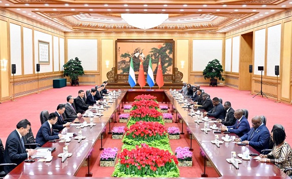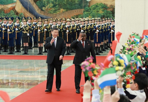 Les relations Chine-Sierra Leone sont un bon exemple de la solidarité et de la coopération Chine-Afrique, a indiqué M. Xi, ajoutant que la Chine est prête à travailler avec la Sierra Leone pour consolider la confiance politique mutuelle de haut niveau, faire avancer la coopération pragmatique et mutuellement bénéfique, et renforcer la coordination sur les affaires internationales et régionales afin de faire passer les relations bilatérales à un nouveau niveau.