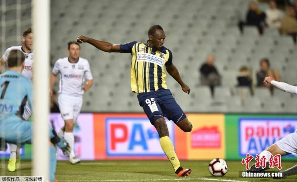 Le Jama?cain Usain Bolt a marqué deux buts lors de son premier match en tant que footballeur chez les Central Coast Mariners vendredi soir à Sydney. L'équipe a battu Macarthur South West United 4 à 0.