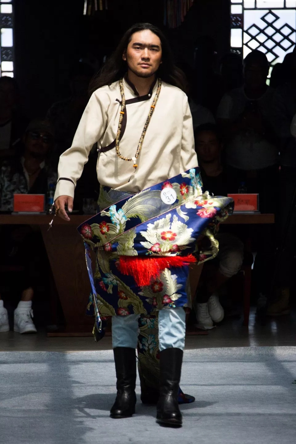 Il s'appelle Tashi Langa. C’est un photographe. Il vient de Qamdo, au Tibet. C’est un authentique homme de Kamba. Son travail habituel est de prendre une caméra pour immortaliser des beaux moments. Mais il a déposé son appareil photo et a enfilé les vêtements tibétains. Une fois sur la scène de défilé, Tashi a changé de style. Tashi fait 185 cm, il est né avec le potentiel d'être un modèle. Dans le concours de modèles tibétains de cette année, il s’est hissé à la tête des 900 candidats tibétains. Tashi dit que ce concours de modèles tibétains ne met pas en jeu seulement sa teneur sur scène et sa hauteur, mais encore plus le tempérament national au fond de son c?ur.