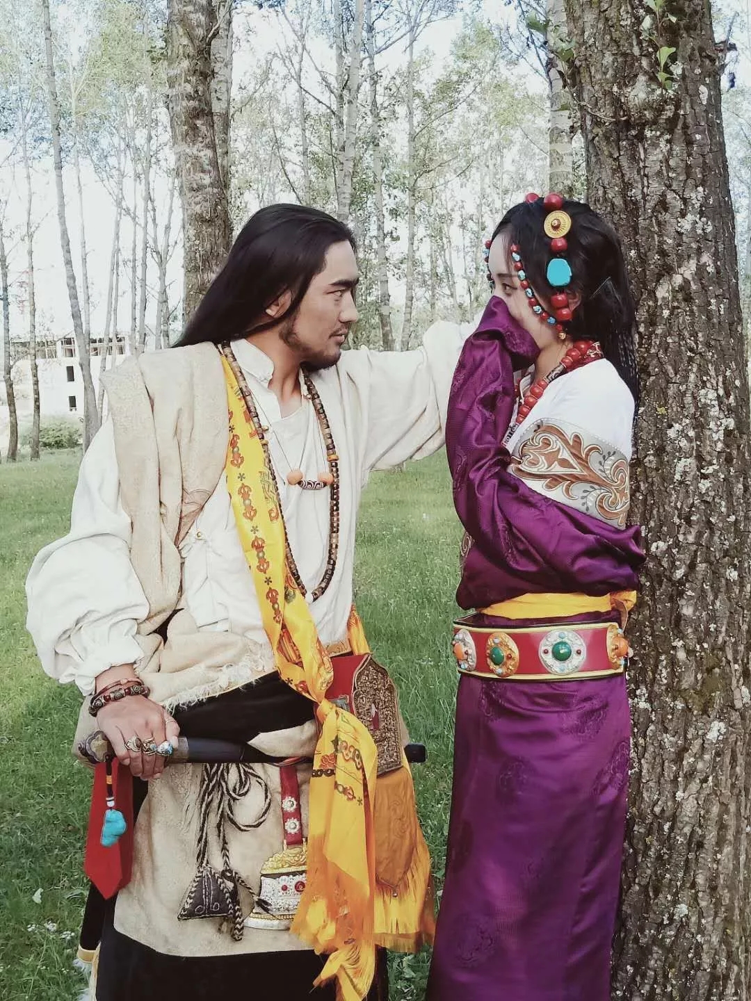 Ses longs cheveux, ses bottes tibétaines et ses habits tibétains représentent les Khampa et exhibent le style unique des hommes tibétains.