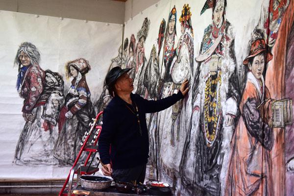 Après être venu au Tibet pour inspecter le temple de Jokhang, le Norbulingka, le palais du Potala et admirer l’art mural sur l’entrée de la princesse Wencheng au Tibet de différents styles et de différentes époques, Jing Tingyao a pris une décision majeure : créer en 15 ans une grande ?uvre autour de la princesse Wencheng faisant 300 mètres de long et 3 mètres de haut.