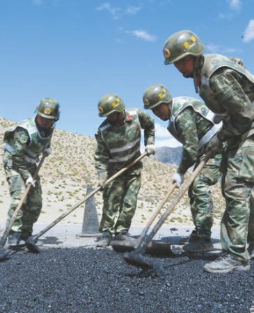 La 17e équipe de maintien routier relevant du 3e département du transport de la gendarmerie s'y installe. Elle est chargée d'entretenir les 90 kilomètres de route du bourg de Tiantuo (Qamdo, Tibet) à la vallée de Gama et d'y assurer une bonne circulation. Le bourg de Bangda, où habite cette brave équipe, se situe à 4 300 mètres d'altitude.