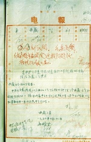 Télégraphe dans lequel l'administration centrale donne son accord pour affecter un nouveau campus à l'école de la Ligue du Tibet et à l'école publique du Tibet