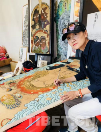 ? Parce que j'ai l'impression d'avoir une certaine compréhension de la peinture traditionnelle ou une compréhension théorique, mais je n'ai pas eu beaucoup de pratiques. J'ai alors commencé à copier les peintures murales. De cette fa?on, j'ai graduellement appris une partie de l'espace bidimensionnel dans ces fresques, y compris la correspondance des couleurs et leur usage. Vers la fin de mes études et pendant plus de deux ans après l'obtention de mon dipl?me, j'ai probablement copié plus de 100 peintures murales de Guge, du temple de Baiju, du temple de Xialu, etc... Deux ans après, j'ai commencé à créer. En raison de la connaissance de l'utilisation des couleurs et des techniques dans la peinture murale, leur application à la pratique a beaucoup aidé, ce qui a une grande influence sur la formation de mon style de peinture ?, continue-t-elle.