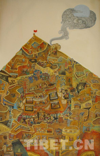 Depuis lors, le style de peinture de Dezhen est revenu au Tibet, se concentrant notamment sur la vie actuelle du peuple tibétain. ? J'apprend à l'aide de peintures traditionnelles. Par exemple, il existe une ?uvre intitulée ? Femme couchée ?, qui s'inspire de la ? Défense des diables au Tibet ?. En utilisant ce prototype et en combinant mes sentiments actuels, je crée et exprime quelques points de vue sur la vraie vie. ?
