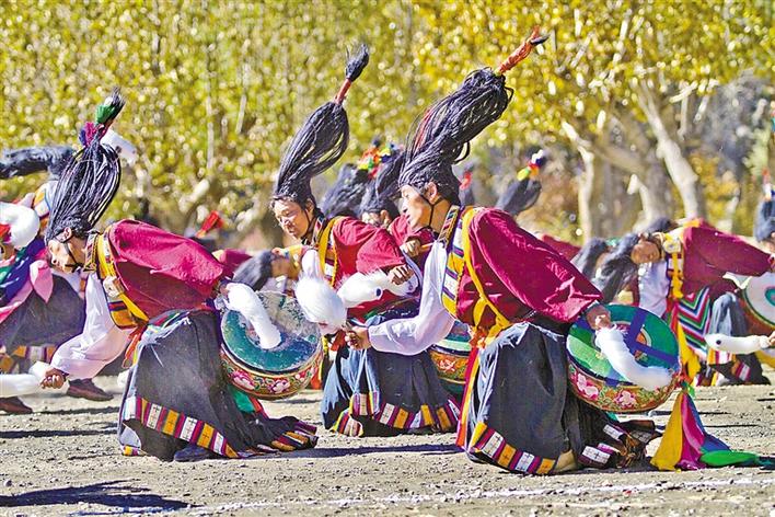 Le village de Jiuhe, dans le district de Qiongjie de la ville de Shannan, Tibet, est le berceau du projet national du patrimoine culturel immatériel de ? la danse Zhuo de Jiuhe ?. En tant qu'art de danse populaire de prière pour le bon augure répandue dans le Shannan, ? la danse Zhuo de Jiuhe ? est appelée ? la danse du tambour de taille ? au Tibet, et elle a une histoire de plus de 1 300 ans. ? La danse Zhuo de Jiuhe ? est un art spécial dans la culture de la danse traditionnelle tibétaine ; c'est également l'une des plus anciennes formes de danses traditionnelles parmi toutes les nationalités du monde.