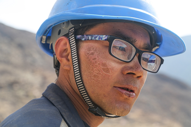 Deux collègues de son équipe de construction sont partis parce qu'ils ne peuvent pas supporter la haute altitude. Mais "Lunettes" est très tenace. Malgré son léger malaise d? à la haute altitude, il a choisi de rester, et il est resté. L'exposition aux rayons ultraviolets du soleil, à la neige gelée et aux vents violents a laissé tant de traces sur le visage de ce type qui est toujours dur comme un roc. Ce sont les plus beaux, les plus glorieux et les plus communs des constructeurs de réseaux électriques, comme notre "lunettes" CHEN Yong, qui ont apporté la lumière dans les maisons - et le bonheur dans les rêves - de chaque foyer tibétain du plateau de Batang, à Garzê, dans la province du Sichuan.