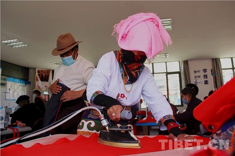Un grand nombre de personnes relocalisées vivent maintenant dans la zone de réinstallation de Senburi, dans la région autonome du Tibet. Les personnes délocalisées des zones de haute altitude constituent une main-d'?uvre abondante adaptée à la fabrication de vêtements et au traitement de la couture. La société Tibet Hanlin Education Service Co. a organisé des formations pour les habitants de la zone de réinstallation et, grace à la promotion des investissements, elle augmente l'emploi et les revenus des personnes réinstallées.