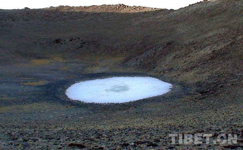 En photo : le paysage du cratère volcanique de Bamao Qiongzong scellé par un lac de glace (Photo de Tang Zhaoming en 2002).
