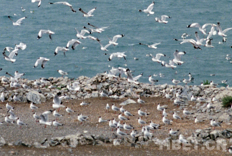 En photo : les mouettes du Tibet qui vivent sur l'?le aux oiseaux de Pangong Tso, dans le nord du plateau du Tibet. (Photo : Tang Zhaoming/1995)